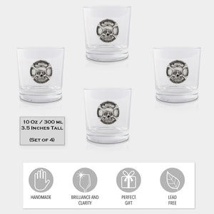 Introducing the Bar Glasses Set of 4 with Metal Skull attached to the front - a bold and edgy addition to your home bar, entertainment space, or glassware collection. These eye-catching whiskey glasses bring a unique twist to your drinkware, making every sip a daring experience.